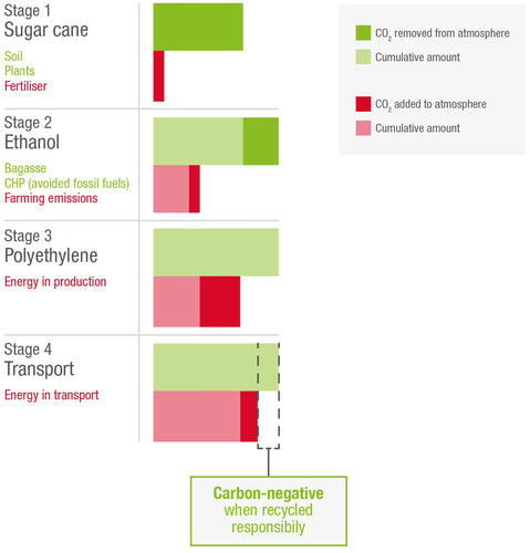 This means that—when recycled—the resulting plastic material is carbon-negative, as verified by The Carbon Trust.